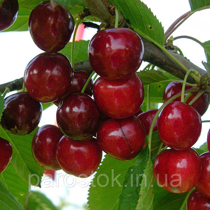 · Плоди: Темно-бордові або рубінові, овальної або серцеподібної форми, глянцеві. М'якоть темно-червона, соковита, м'ясиста, щільна (хрустка). Смак винно-солодкий, десертний.