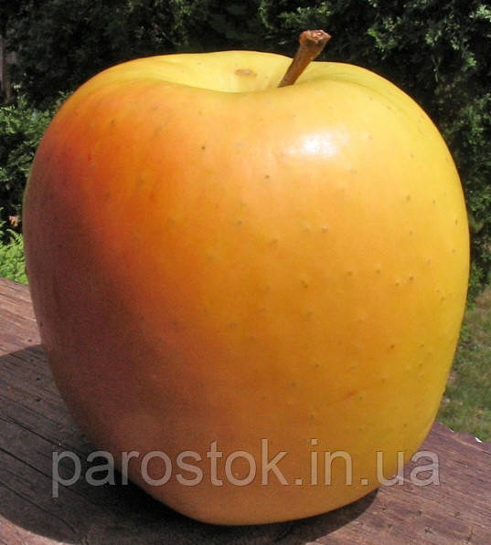 Плоди округло-конічні, 180-250 грам, жовті, з оранжево-червоним рум'янцем на сонячній стороні.